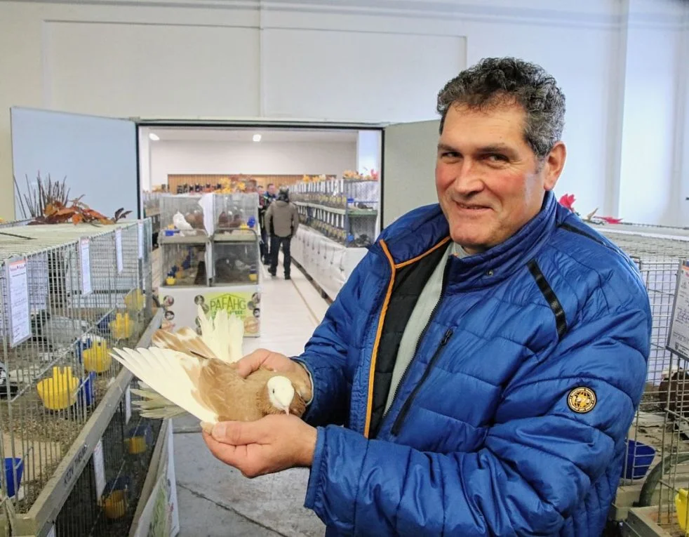 Vogtländer Weißkopftrommeltauben, Kleinsilber Havanna Kanninchen