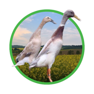 Wetterharte, wirtschaftliche Ente mit vorzüglicher Fleischqualität von besonderer Schmackhaftigkeit. Lieferant hochwertiger Daunen. Legeleistung 50-60 Eier pro Ente und Jahr, mit einem Eigewicht von 70 g und weiß-gelblicher Schalenfarbe.